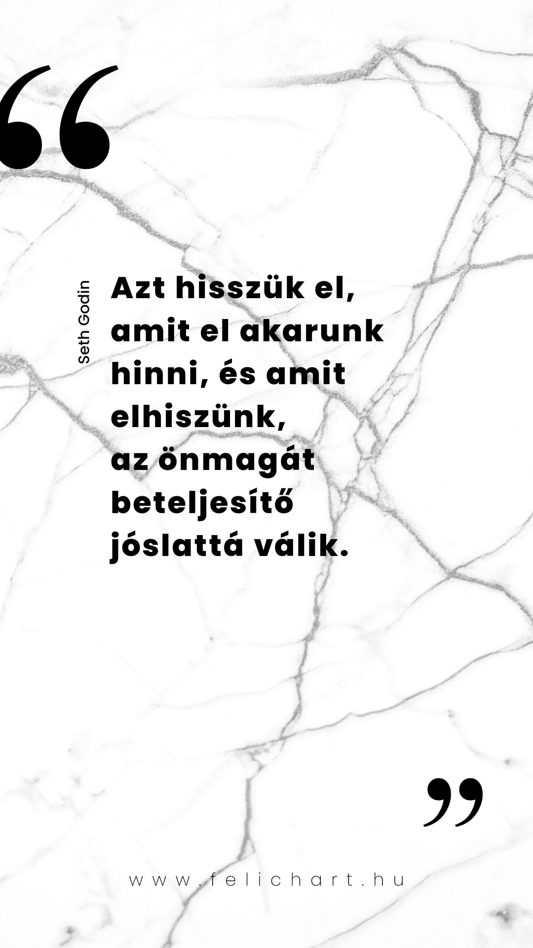 „Azt hisszük el, amit el akarunk hinni, és amit elhiszünk, az önmagát beteljesítő jóslattá válik.” – Seth Godin