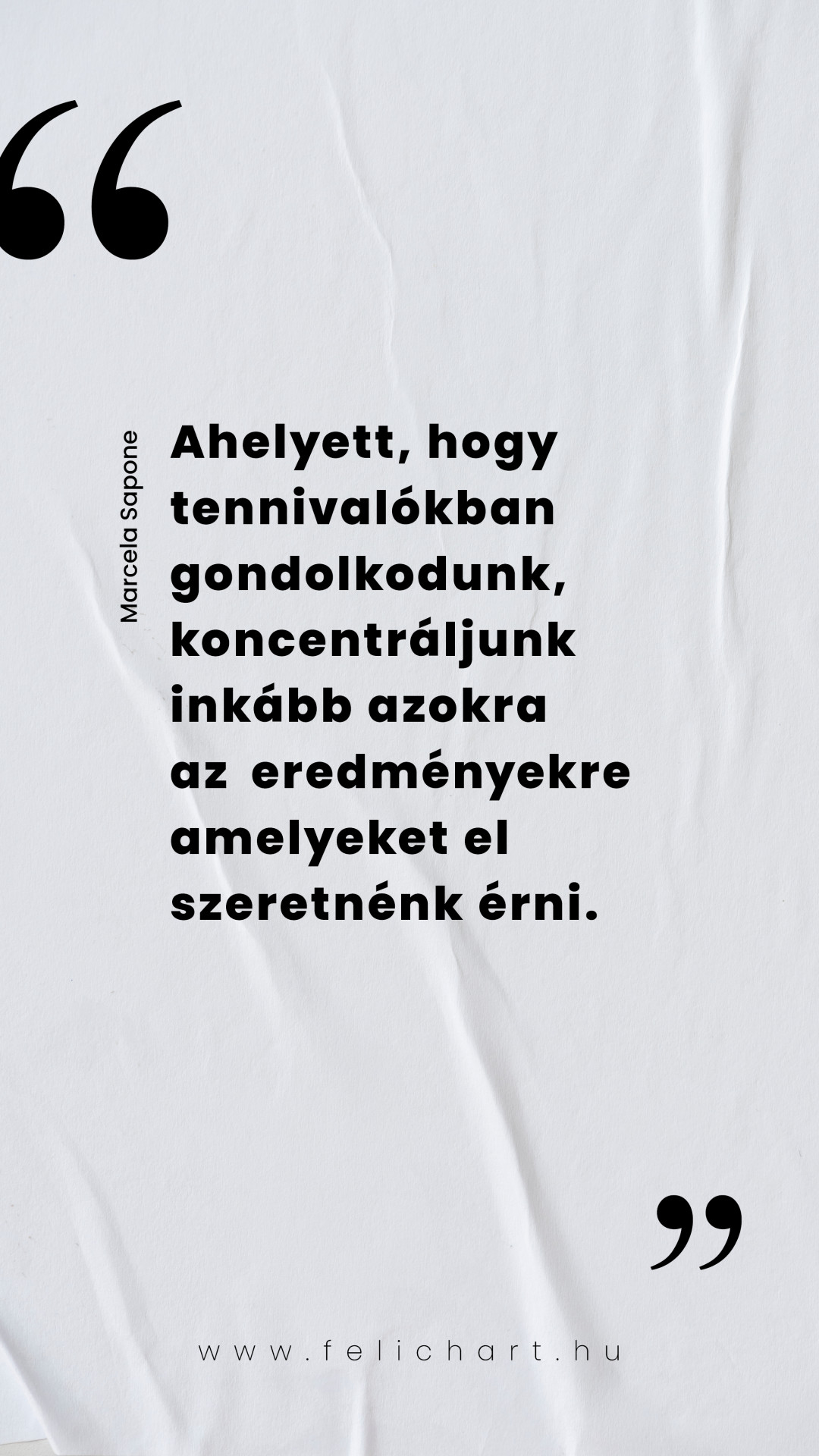 „Ahelyett, hogy tennivalókban gondolkodunk, koncentráljunk inkább azokra az eredményekre, amelyeket el szeretnénk érni.” – Marcela Sapone