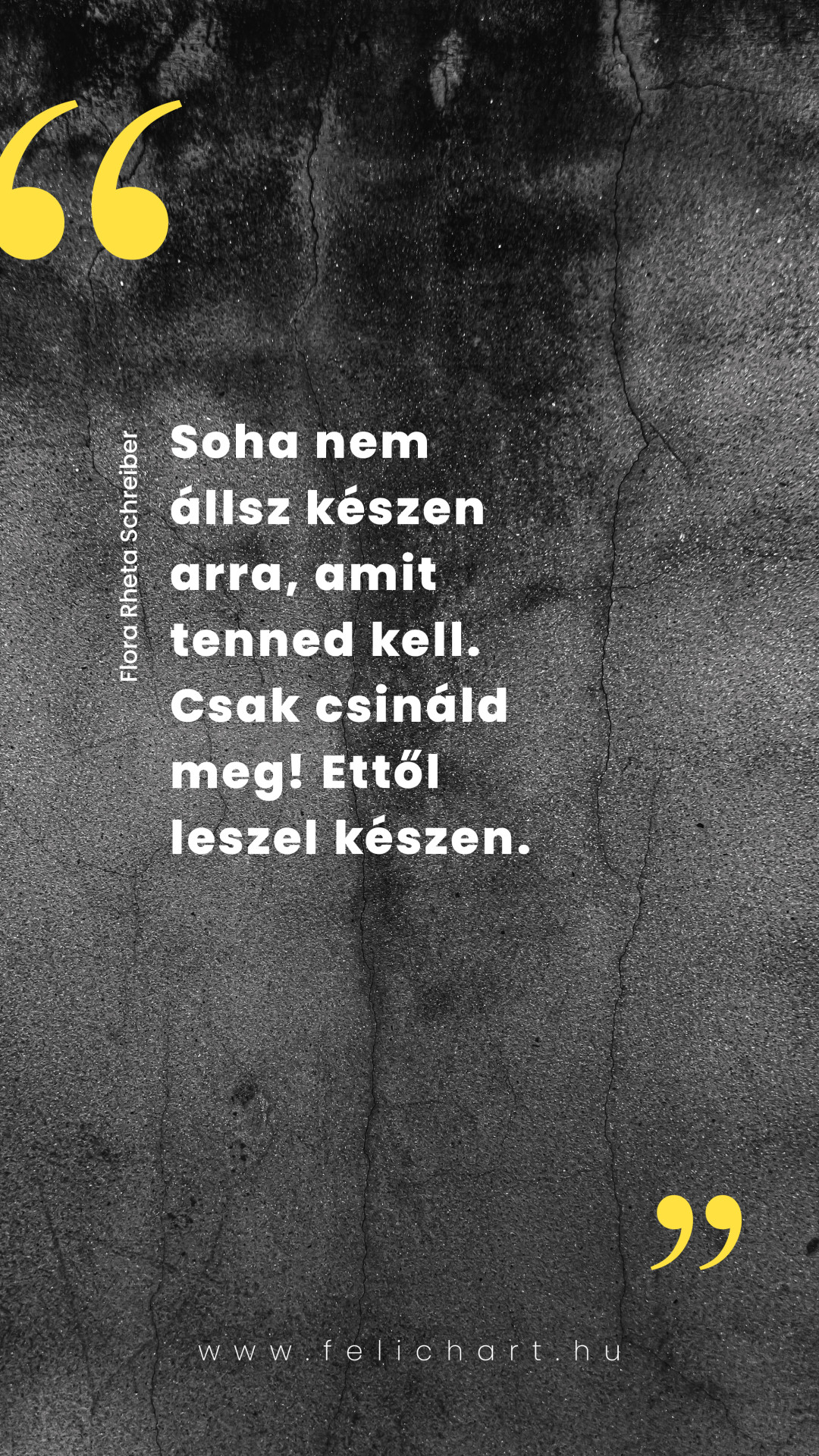 „Soha nem állsz készen arra, amit tenned kell. Csak csináld meg! Ettől leszel készen.” – Flora Rheta Schreiber