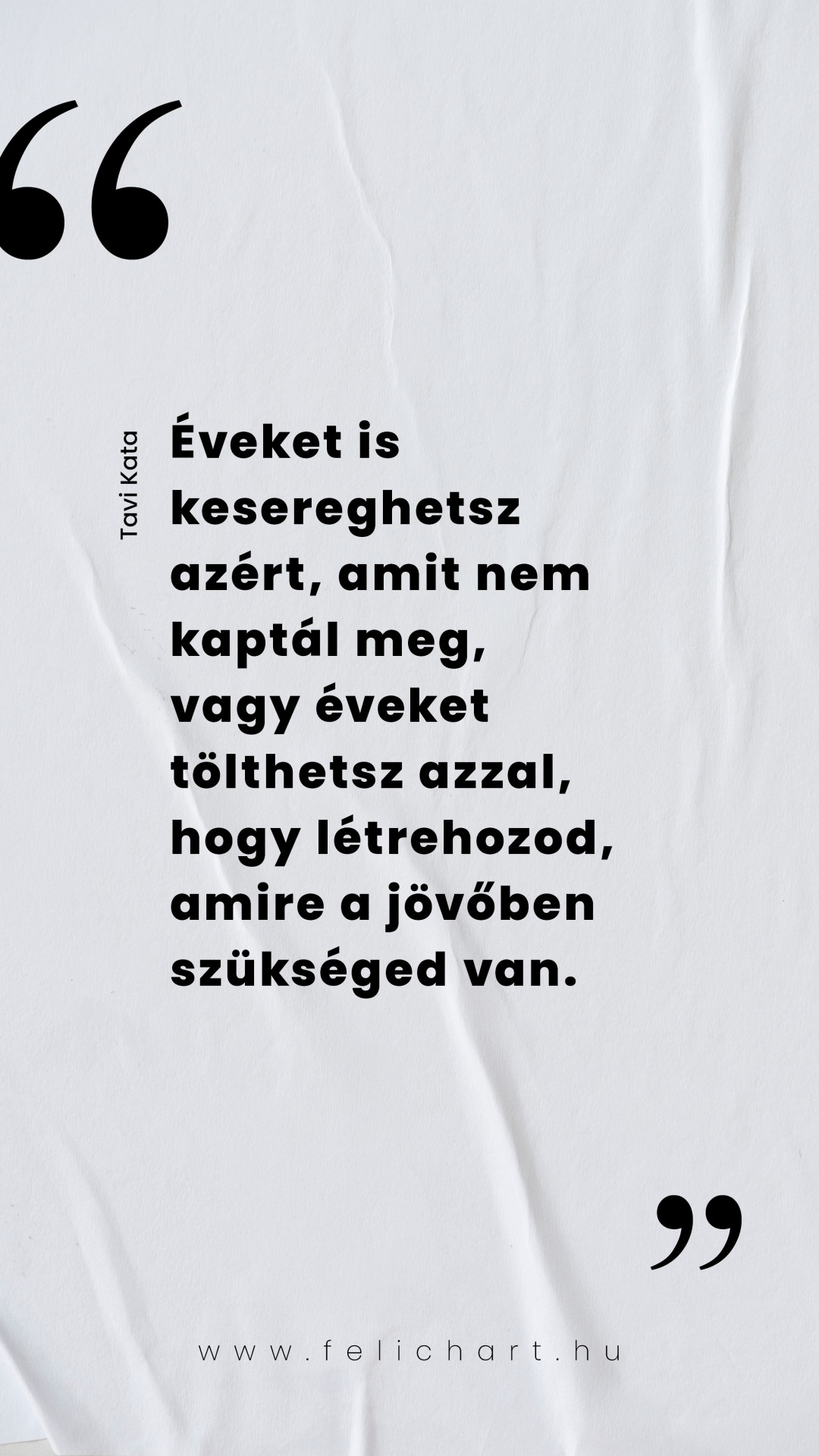 „Éveket is kesereghetsz azért, amit nem kaptál meg, vagy éveket tölthetsz azzal, hogy létrehozod, amire a jövőben szükséged van.” – Tavi Kata