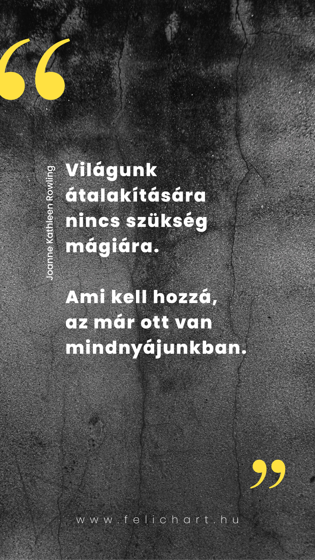 „Világunk átalakítására nincs szükség mágiára. Ami kell hozzá, az már ott van mindnyájunkban.” – Joanne Kathleen Rowling